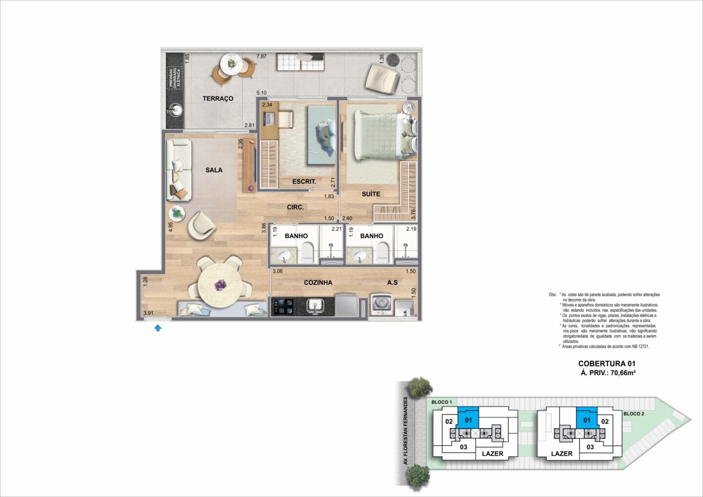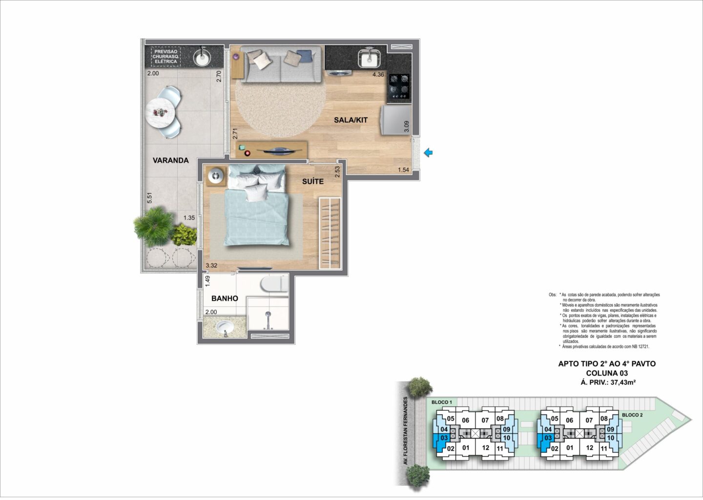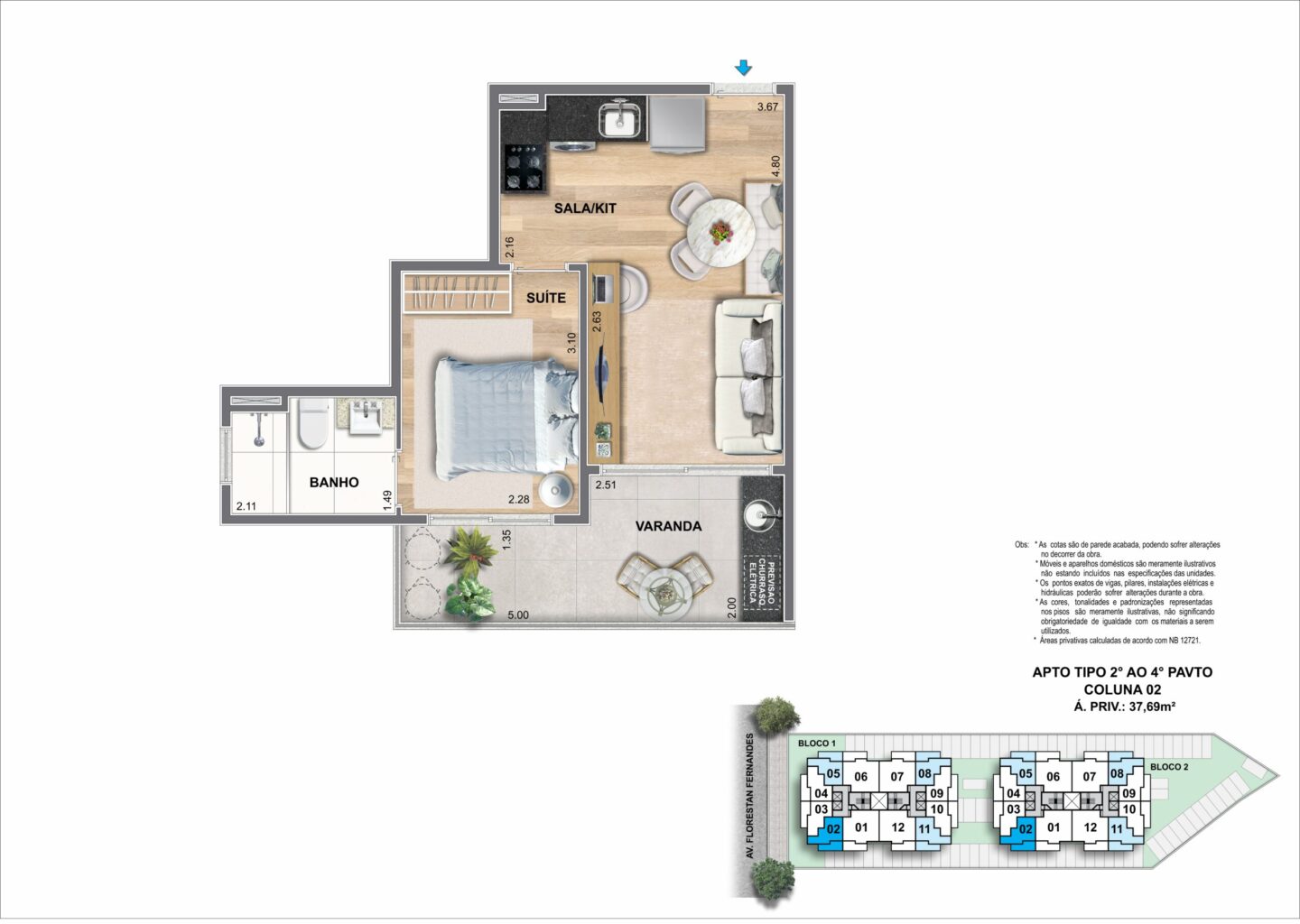 Com opções de 01, 02 e 03 quartos, cada unidade foi projetada para oferecer a combinação perfeita de modernidade e conforto, adaptando-se às suas necessidades, seja um espaço prático e versátil ou um ambiente acolhedor para viver em família.