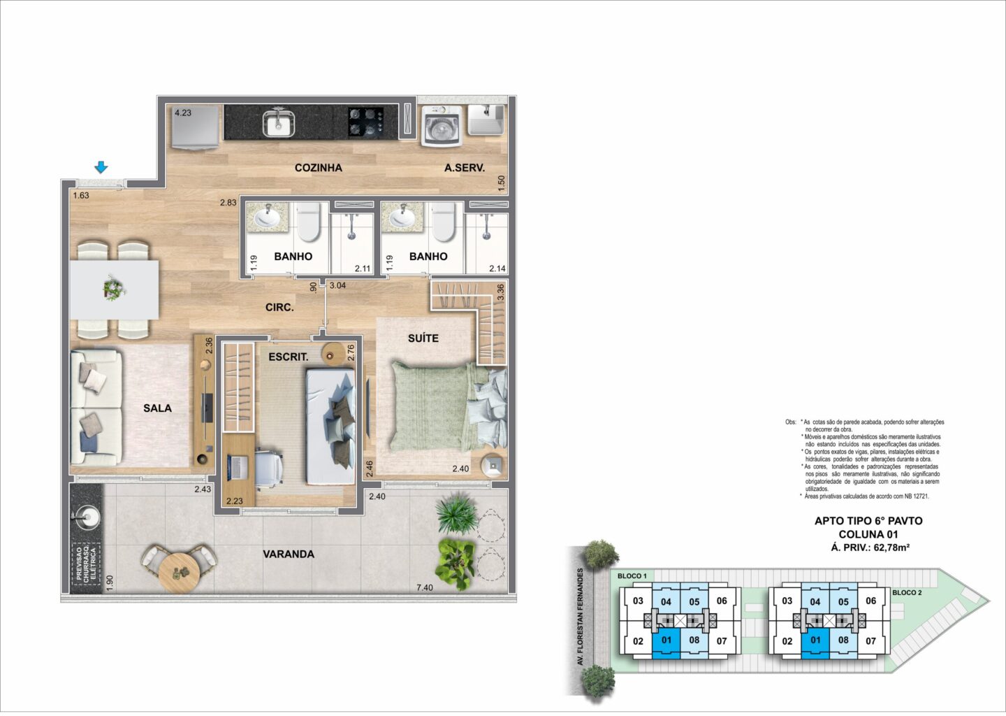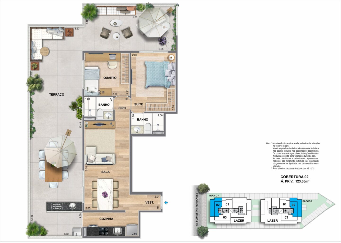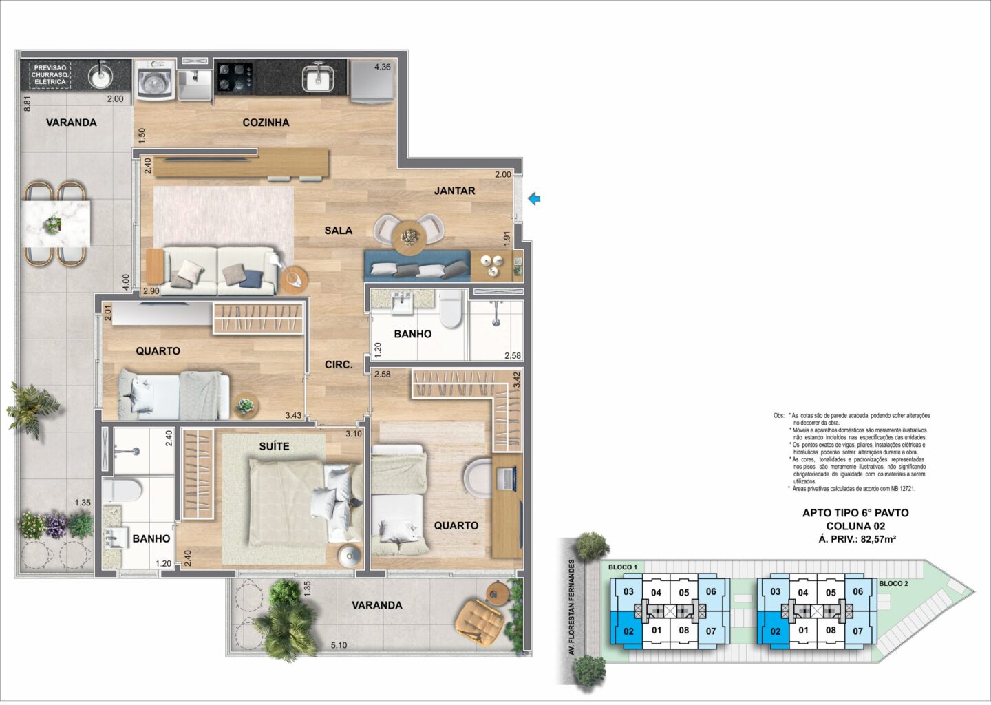 Com opções de 01, 02 e 03 quartos, cada unidade foi projetada para oferecer a combinação perfeita de modernidade e conforto, adaptando-se às suas necessidades, seja um espaço prático e versátil ou um ambiente acolhedor para viver em família.